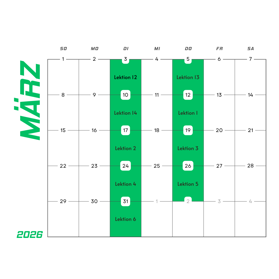 Unser Theorieunterricht findet dienstags und donnerstags von 18:30 bis 20:00 Uhr statt und wird in 14 Lektionen unterteilt. Die Teilnahme am Theorieunterricht ist preislich im Grundbetrag enthalten, du brauchst also nicht extra separat bezahlen. Bei besonderen Anfragen wie zum Beispiel Einzelunterricht, kontaktiere uns bitte per E-Mail, telefonisch oder besuche uns einfach in der Fahrschule!